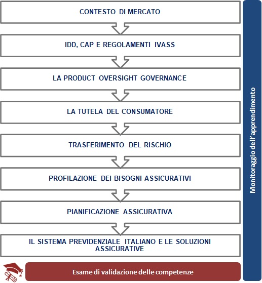 - Il corso si pone l’obiettivo di illustrare gli obblighi previsti dalla direttiva europea, dalla normativa nazionale e dai regolamenti che presidiano il settore assicurativo.